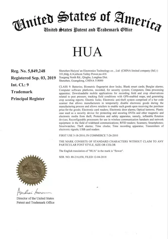 近日,在各方的努力與支持下,慧友安成功取得了“HUA”商標的歐盟、美國商標注冊證書,商標注冊證書的取得,一方面有助于公司在海外加強商標保護,維護公司的知識產權權益;另一方面有助于提高公司品牌和國際市場知名度,對開拓國際市場具有積極意義。