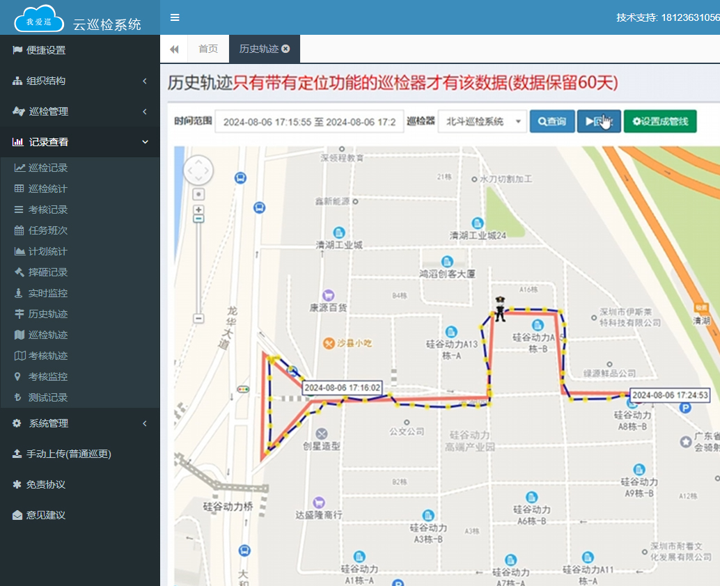 在巡檢過(guò)程中,該功能會(huì)持續(xù)記錄巡檢軌跡。完成任務(wù)后,管理人員通過(guò)相關(guān)軟件,只需設(shè)定時(shí)間段,就能便捷查詢巡檢人員在此期間的行動(dòng)路線。這一軌跡查詢功能意義重大,一方面能監(jiān)督巡檢人員是否按規(guī)定路線巡檢,確保無(wú)遺漏區(qū)域;另一方面,若出現(xiàn)設(shè)備故障或安全隱患,可依據(jù)軌跡快速回溯,排查問(wèn)題出現(xiàn)的可能節(jié)點(diǎn)。?